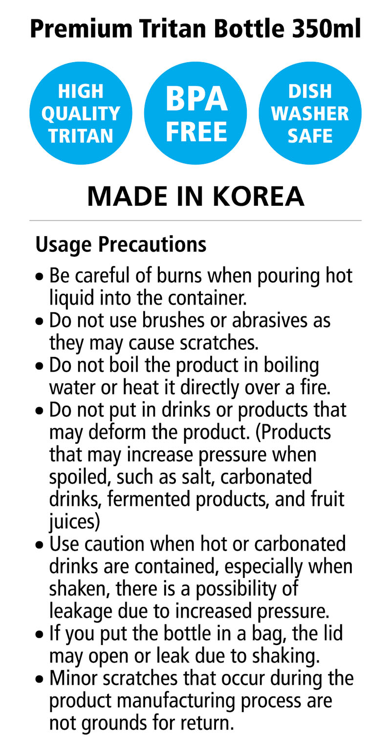 ●High Quality Tritan ●BPA Free ●Dishwasher Safe ●350ml